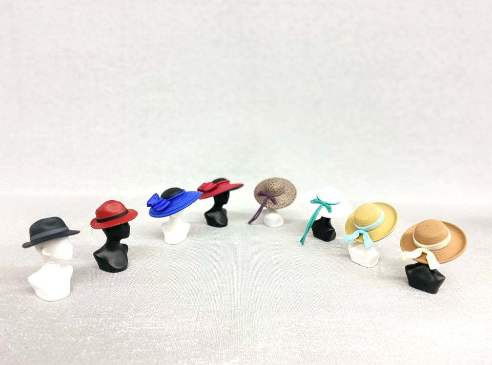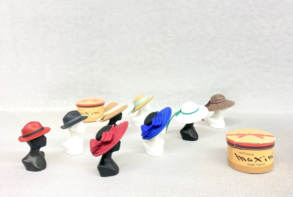 帽子にはそれぞれマネキンと帽子箱(組み立て式ペーパークラフト)が付きます。