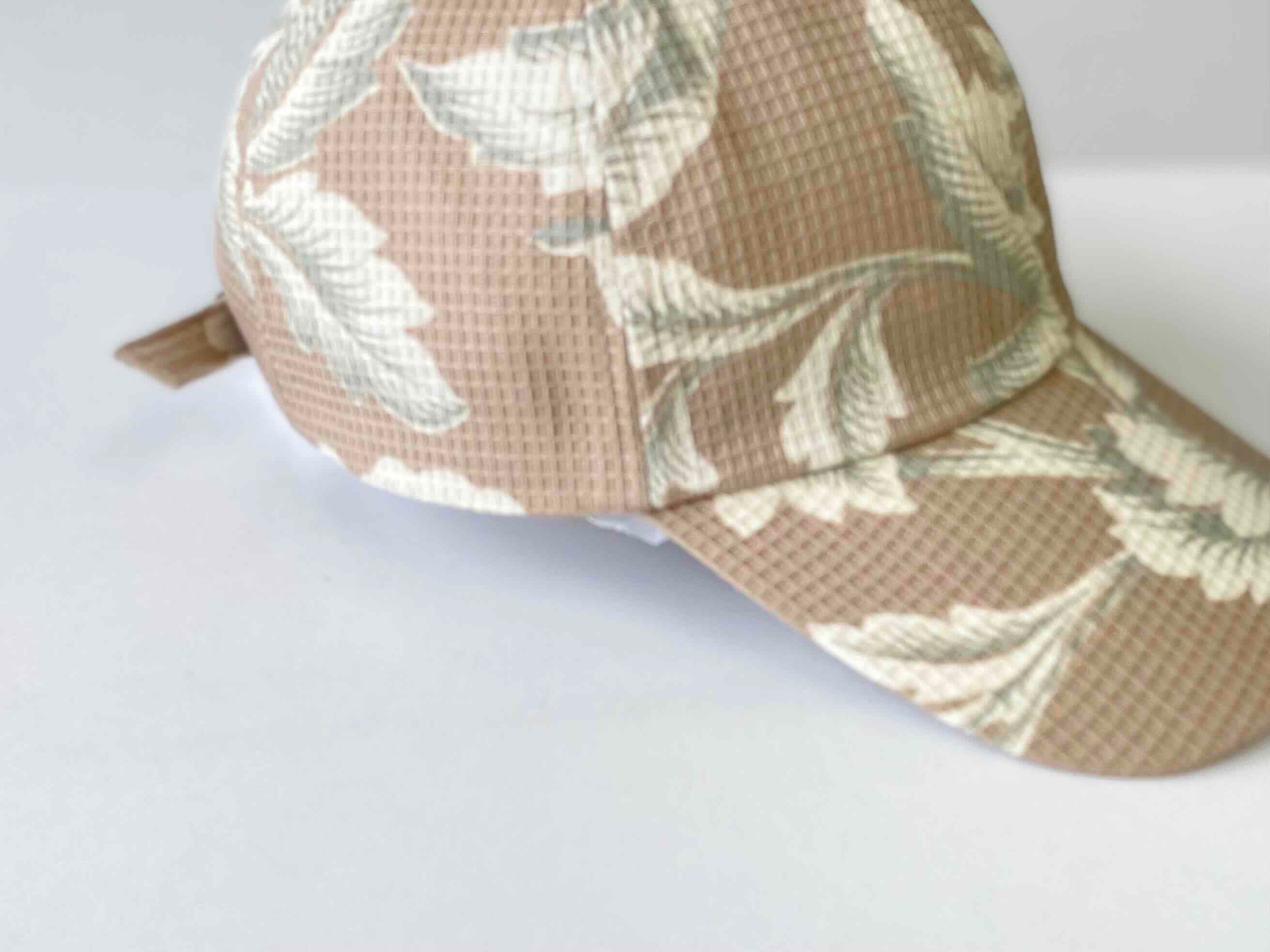 ワッフル素材の柄生地キャップ。