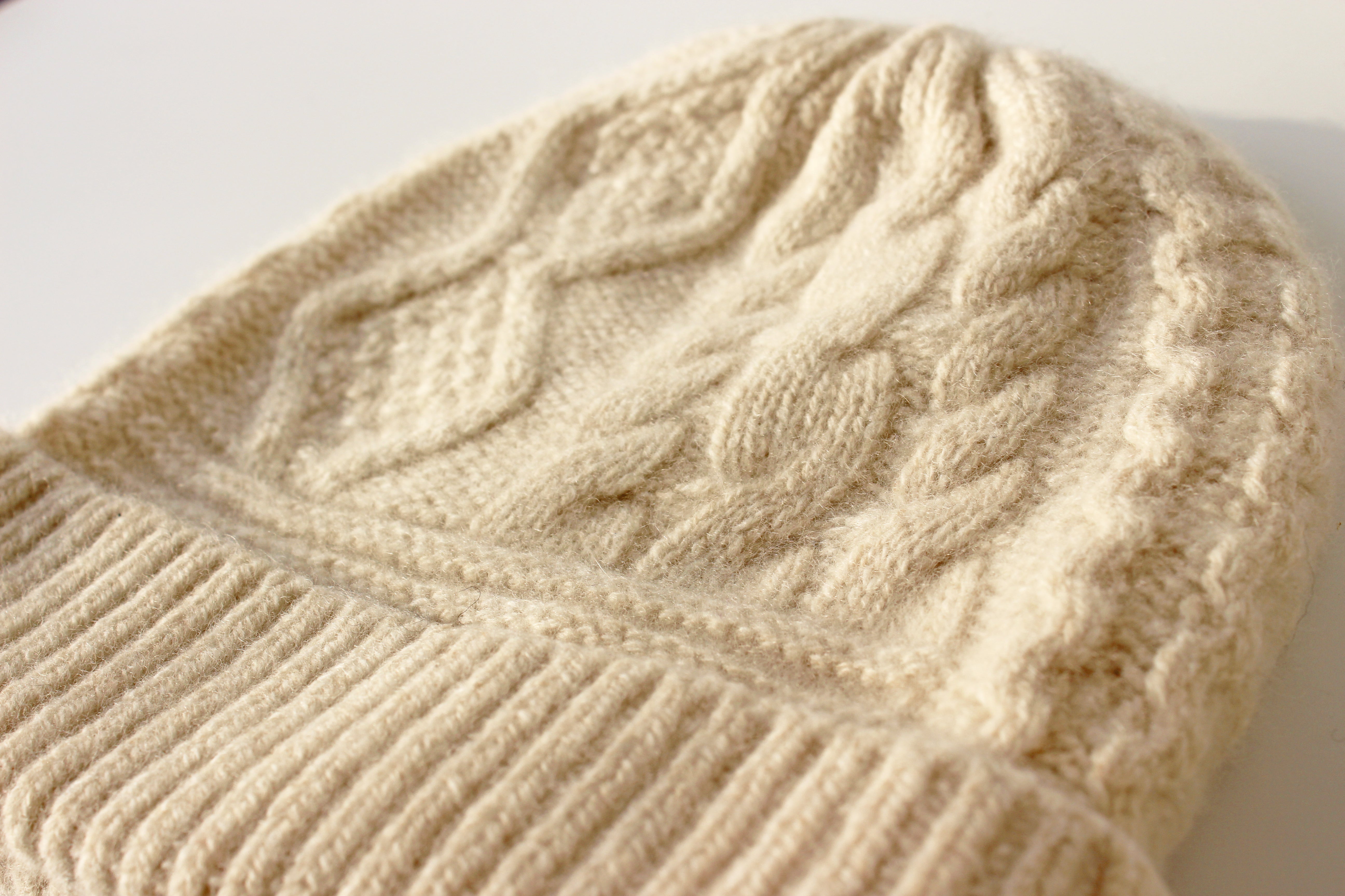 大人のためのケーブル編みニット帽です。