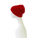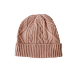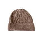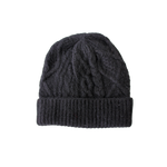 顔まわりを華やかに見せてくれるアラン編みニット帽です。